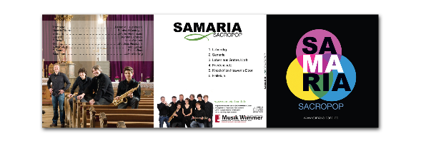 Für die junge Sacropop-Band "Samaria" habe ich Anfang 2012 neben ihrem Logo auch eine CD-Hülle, den CD-Aufdruck, sowie einen Werbe-Rollup gestaltet.